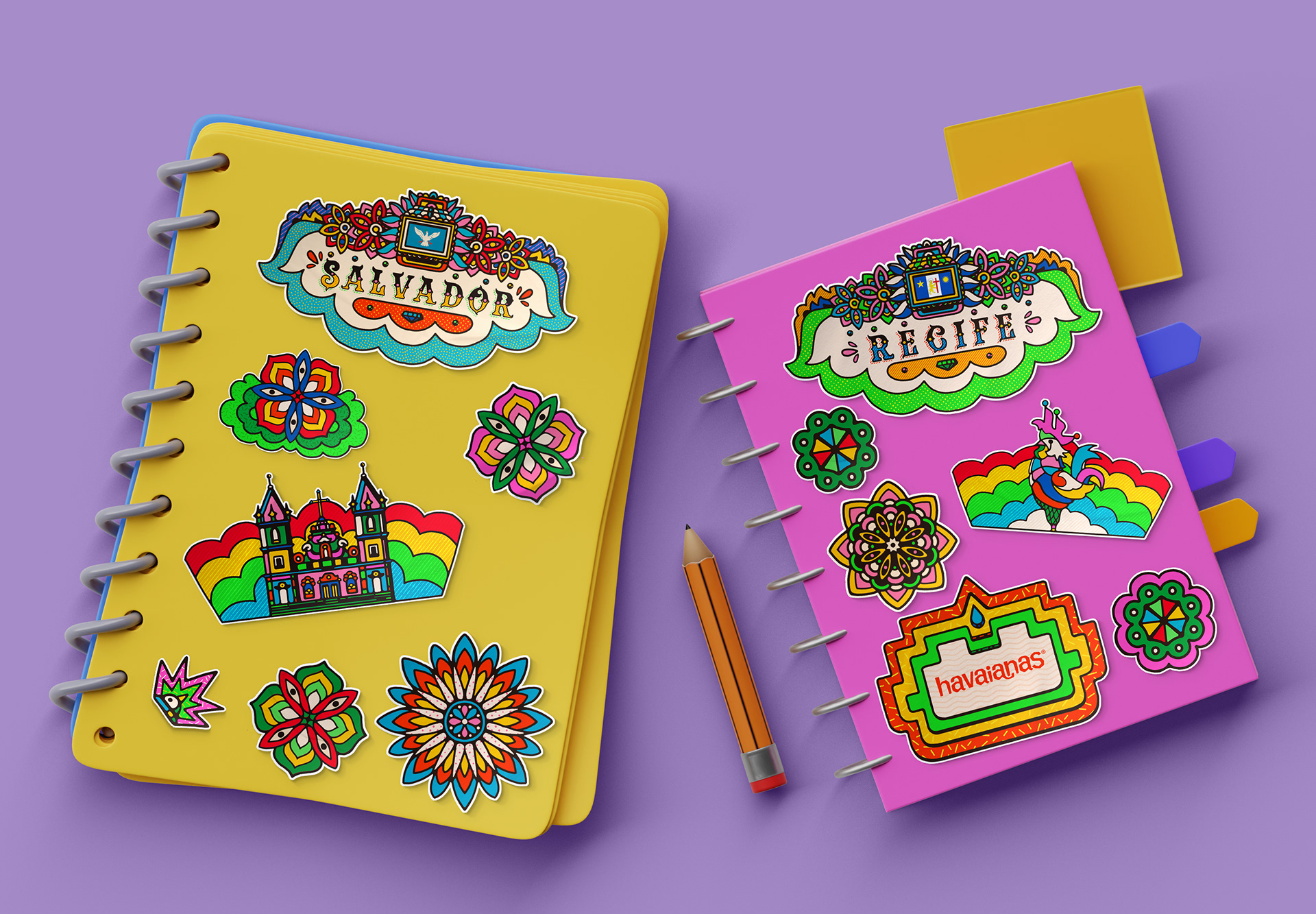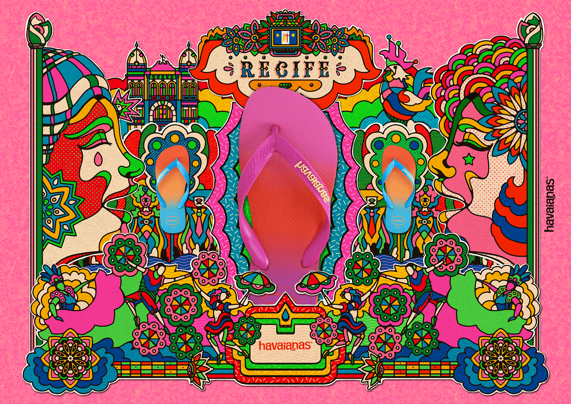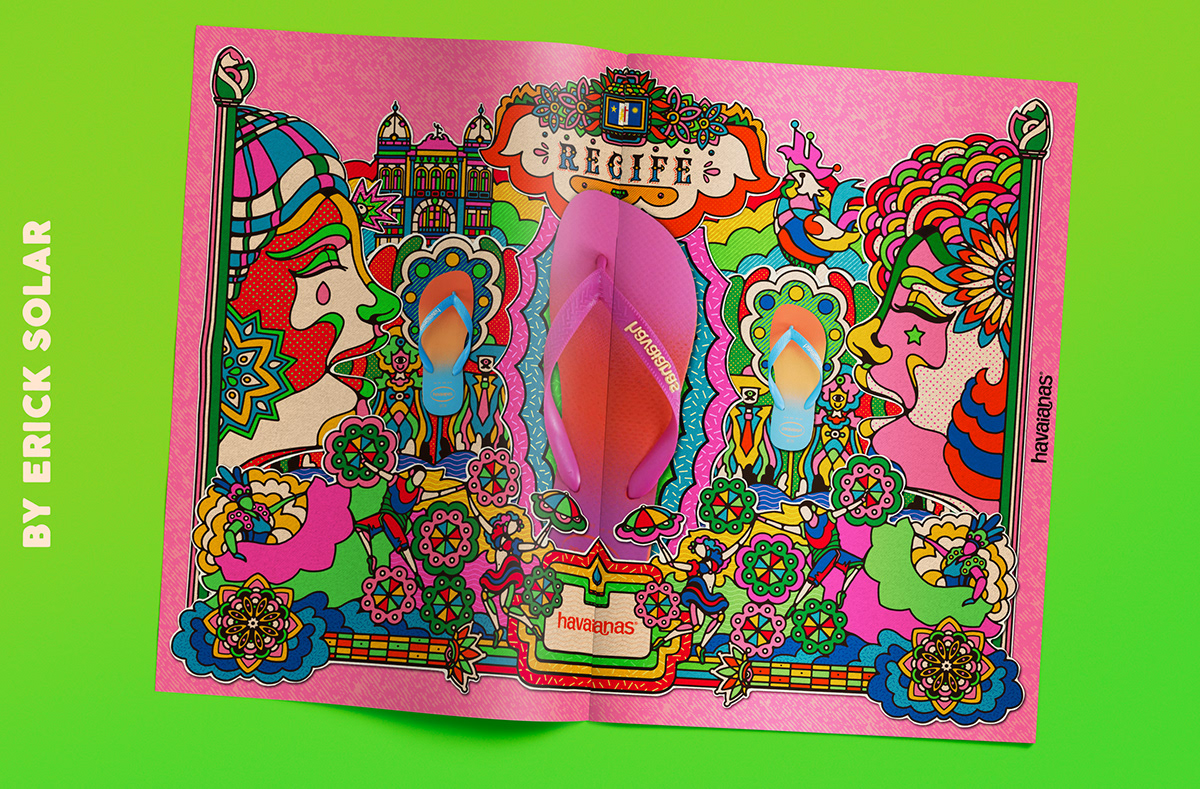 The first illustration is inspired by the Recife carnival, famous worldwide for the contagious rhythm of Frevo and Giant Doll parades.