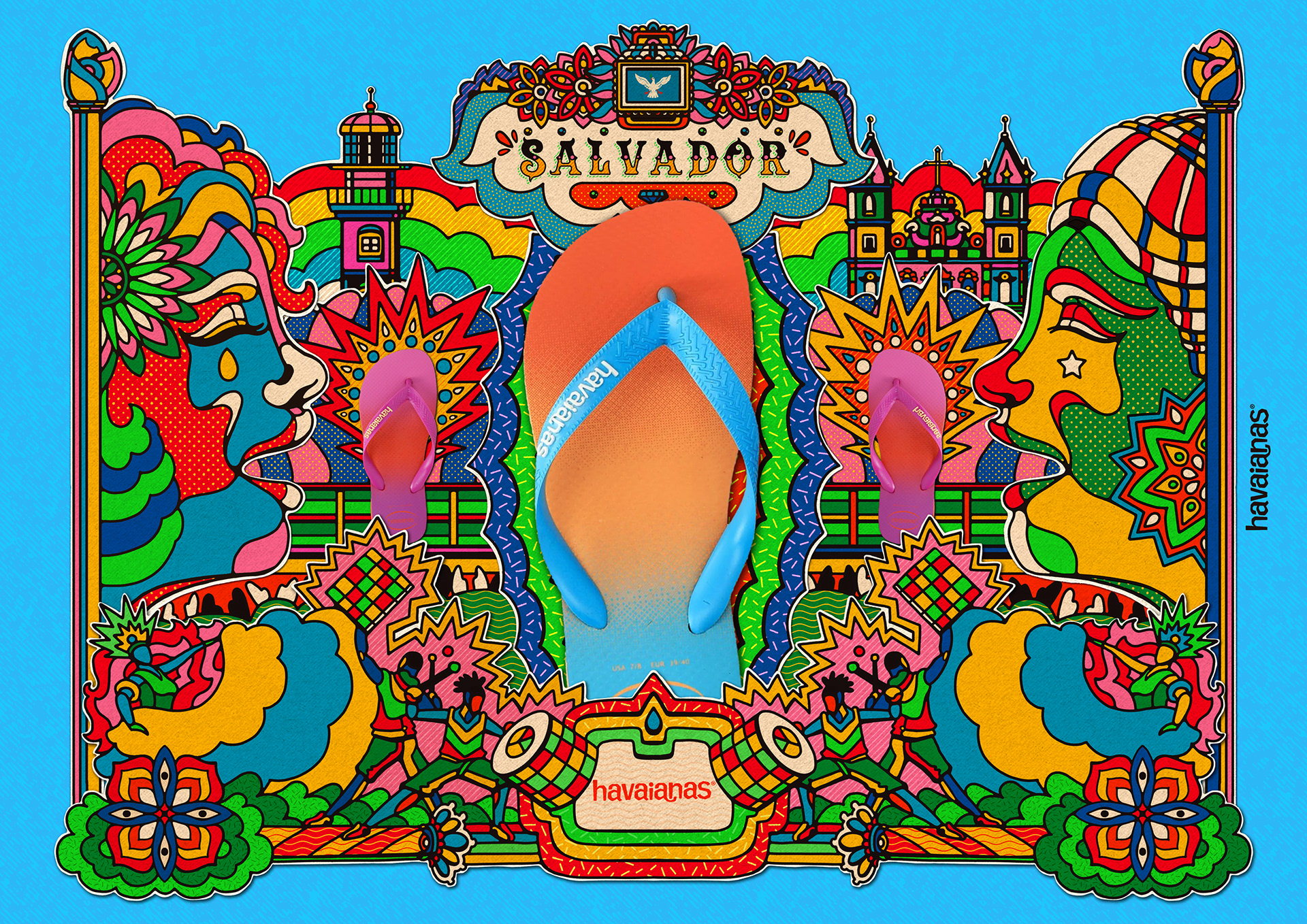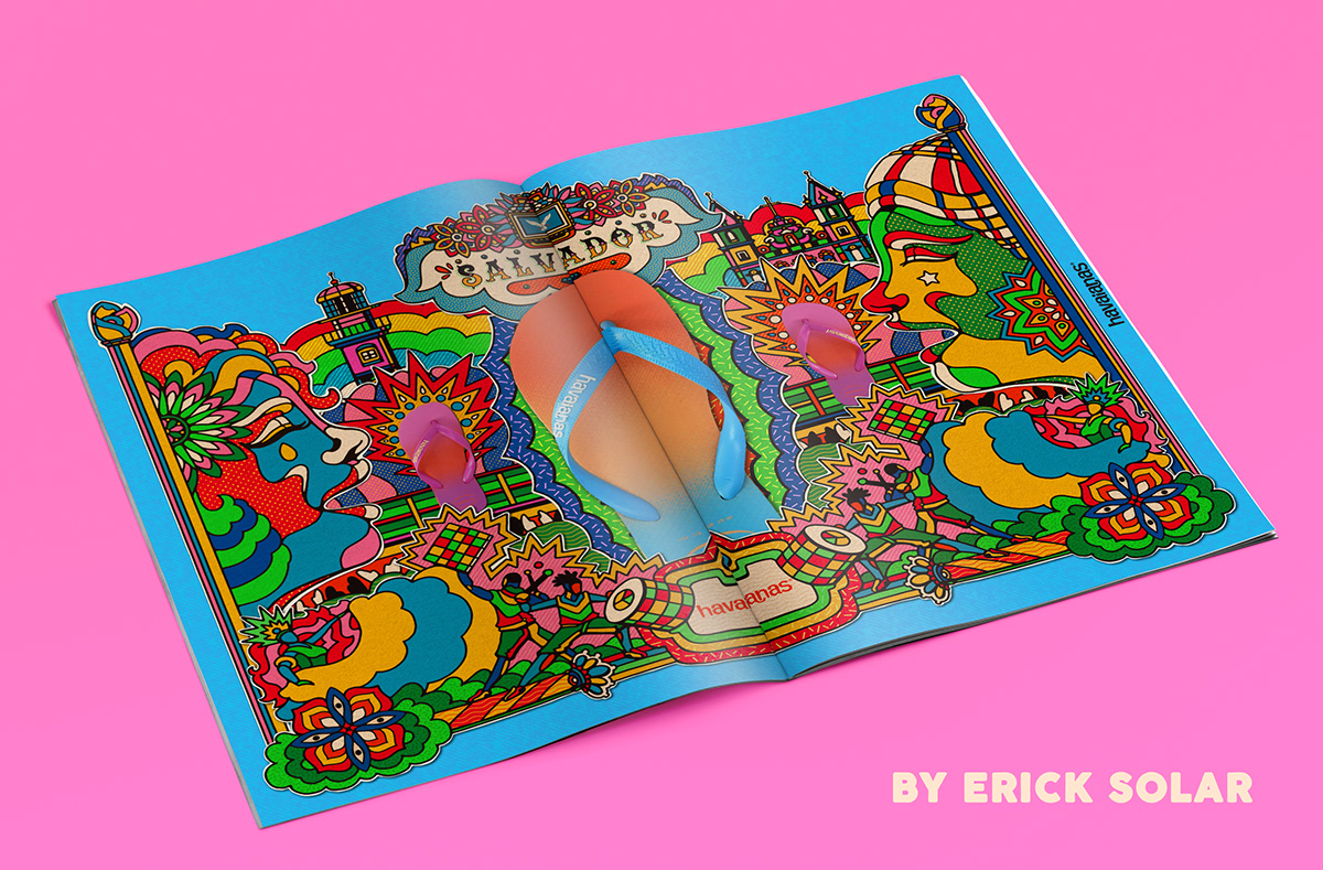 The second illustration is inspired by the Salvador carnival, famous worldwide for the electrifying performances of the group Olodum and musical blocks with "trios elétricos" (big trucks prepared for live concerts).
