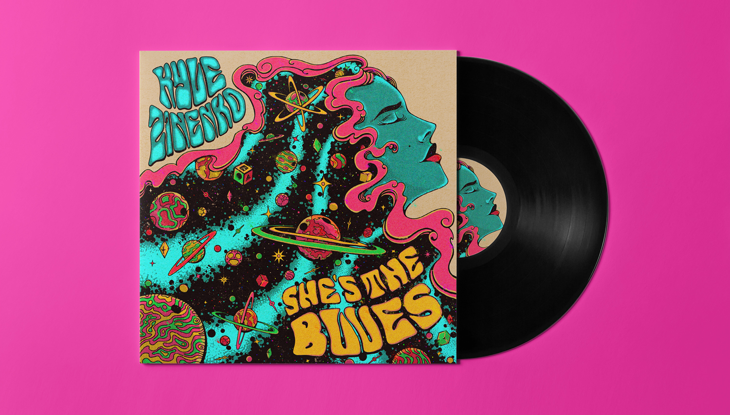 She's The Blues was my first professional work and first project with artist Kyle Zinenko. As of August 2025, the song is yet to be released officialy. In this project I used the same base illustration to make a single cover and a poster design to be sold in concerts.