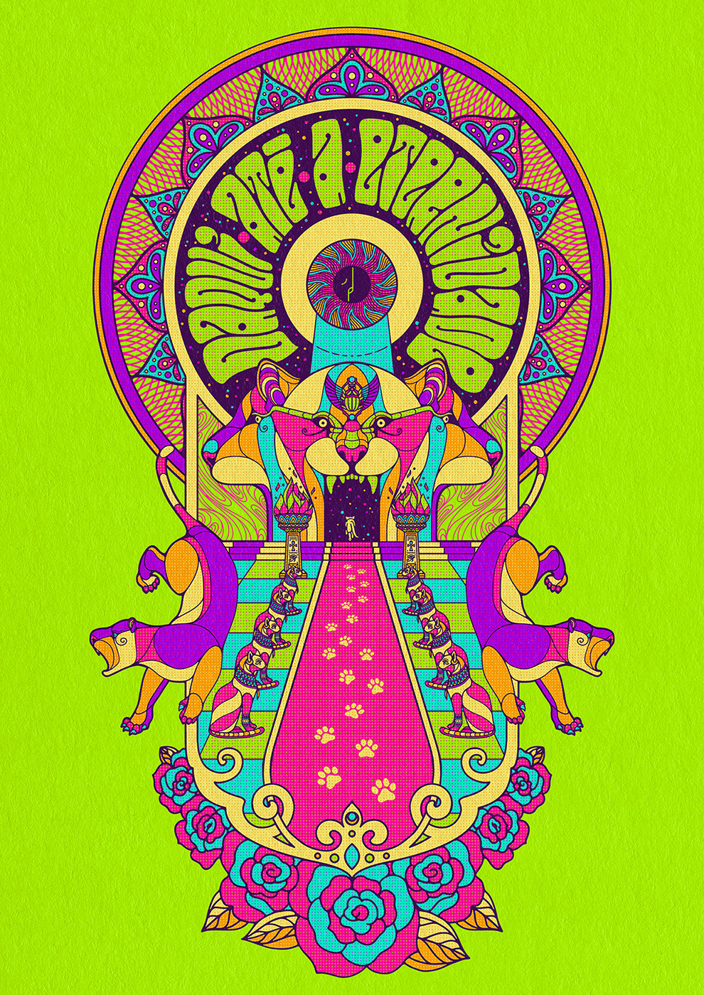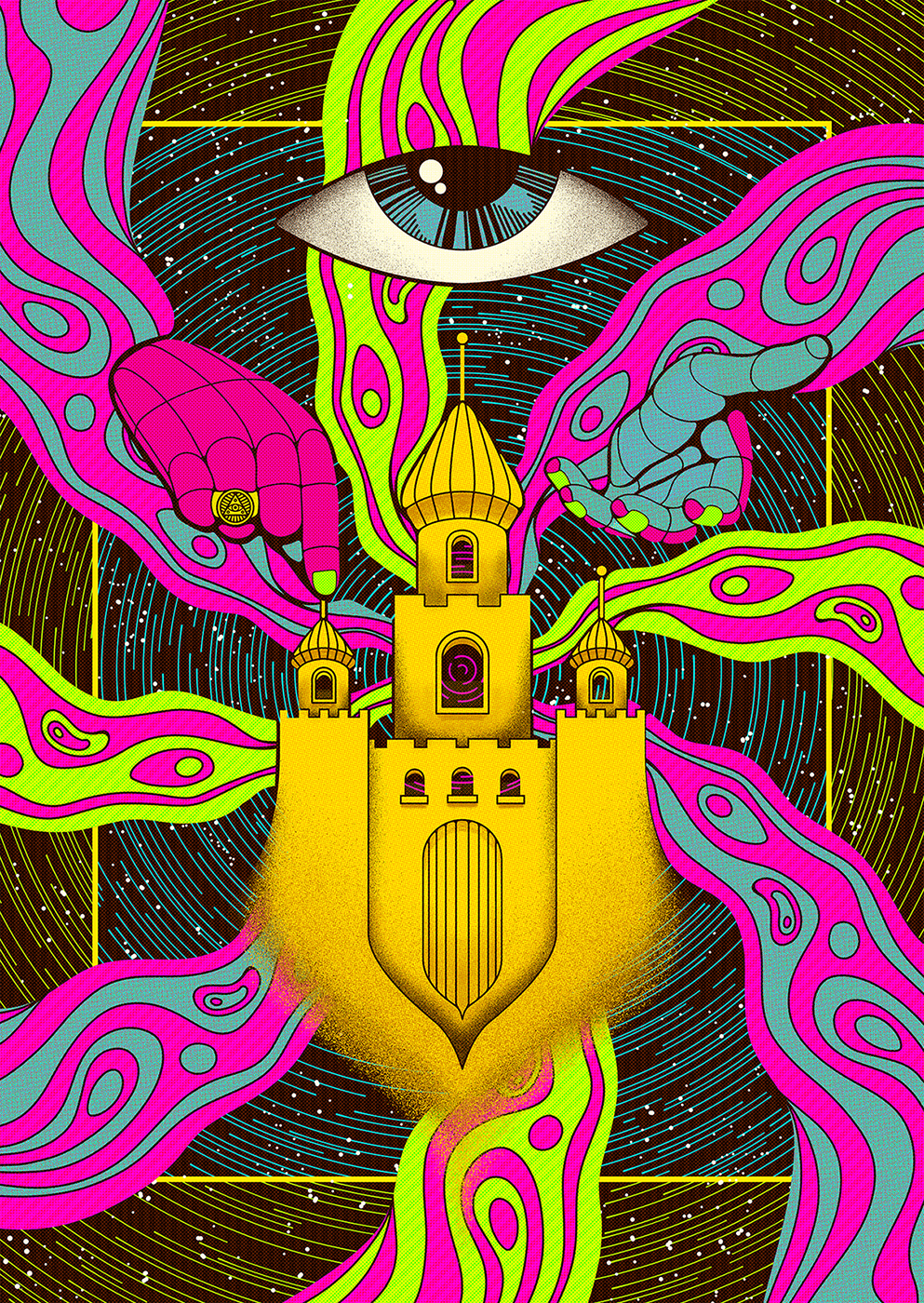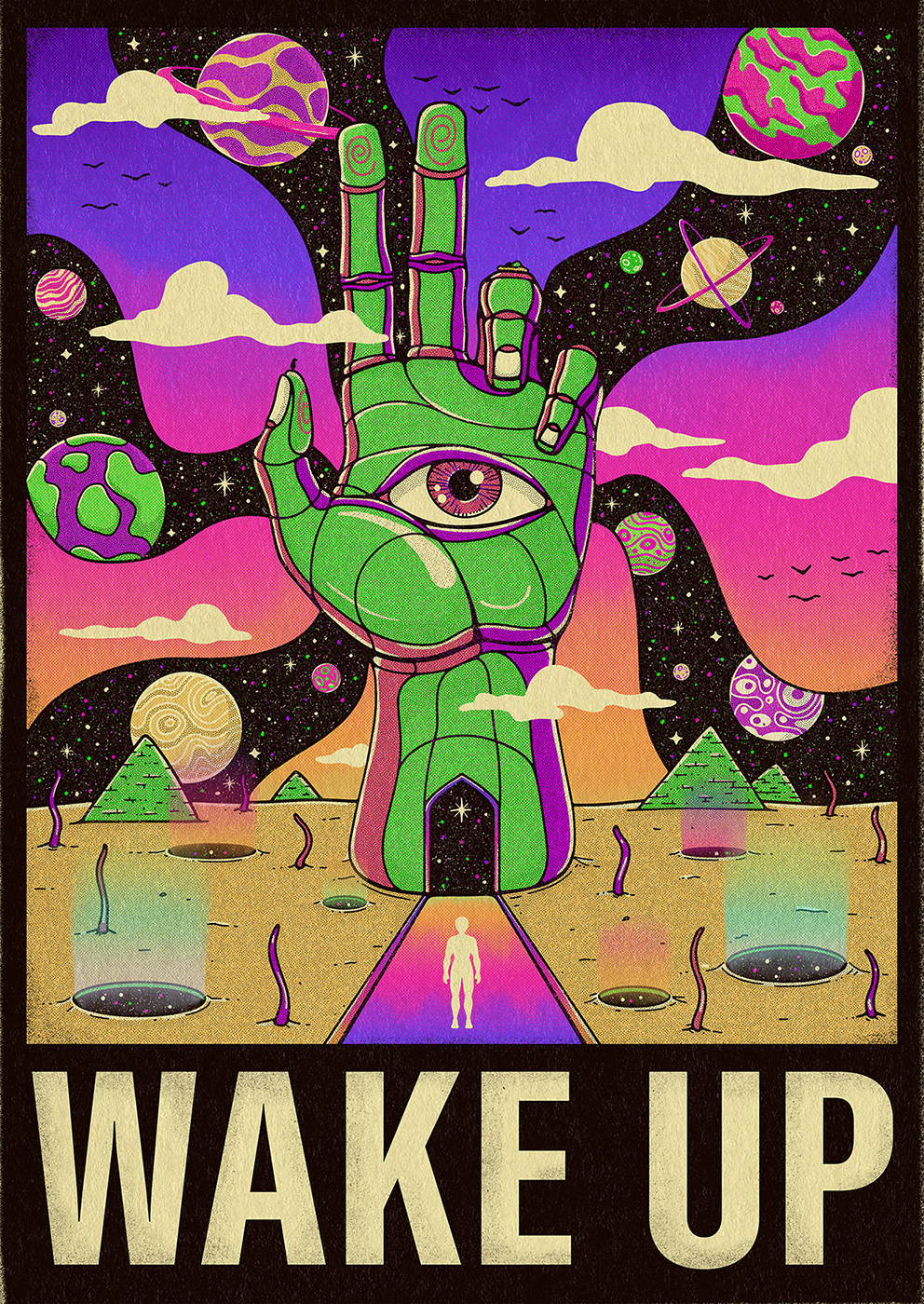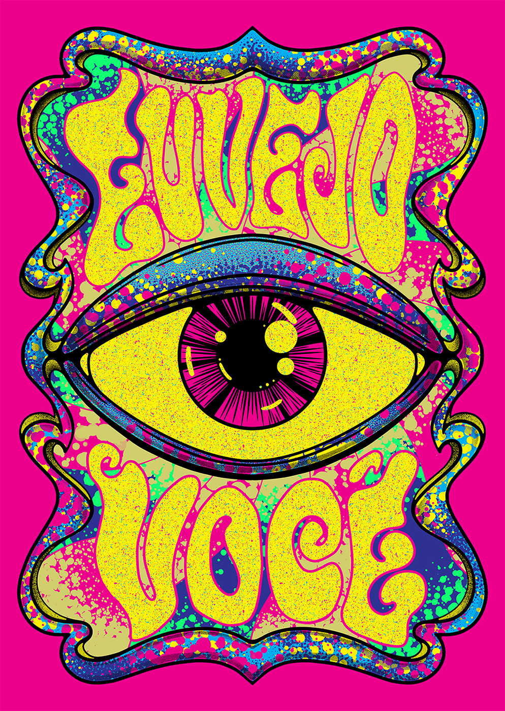 These are personal artworks that I made since I decided to be a professional illustrator. You can see that I love to draw hands, eyes and the space, mixed with lots of colors in a vintage psychedelic style.