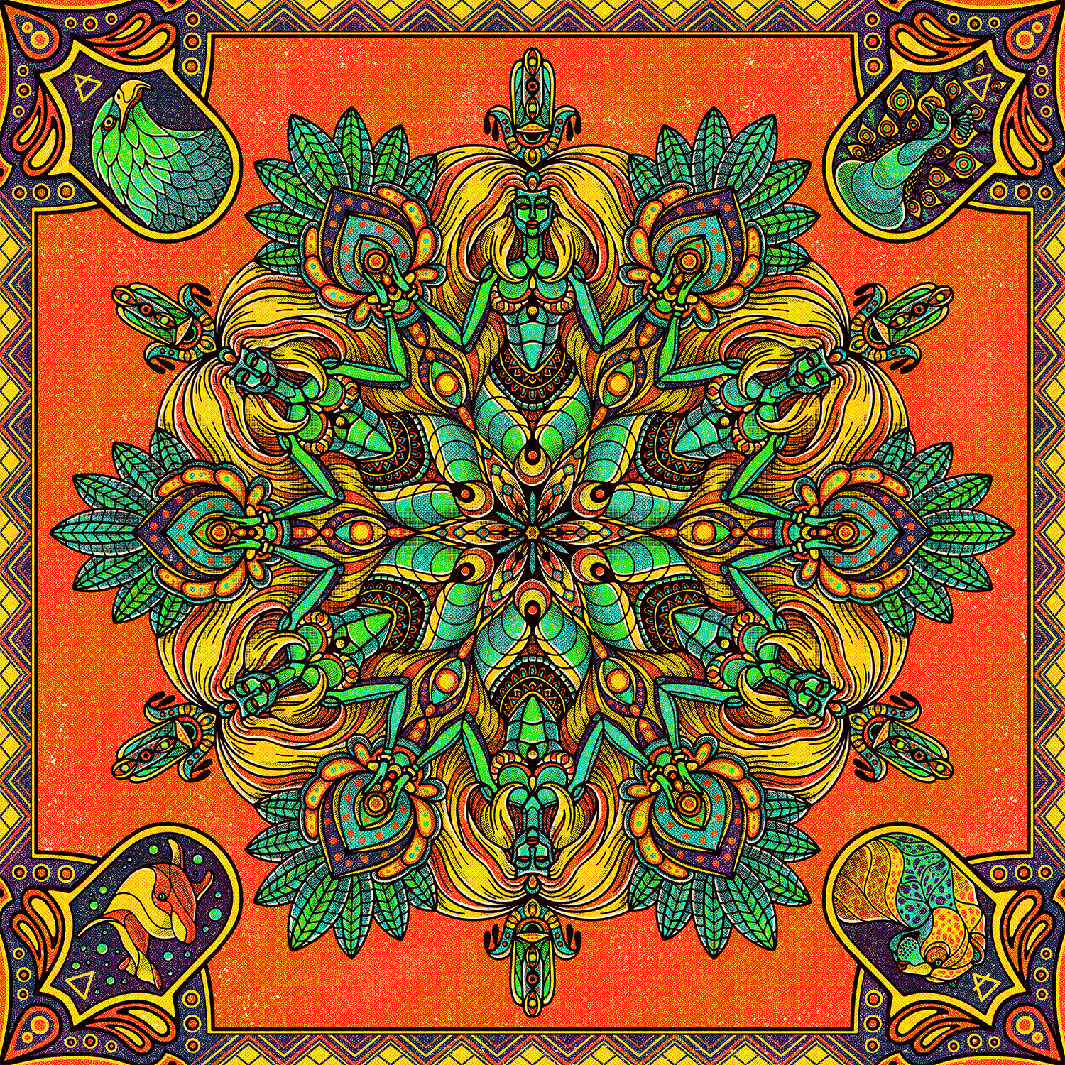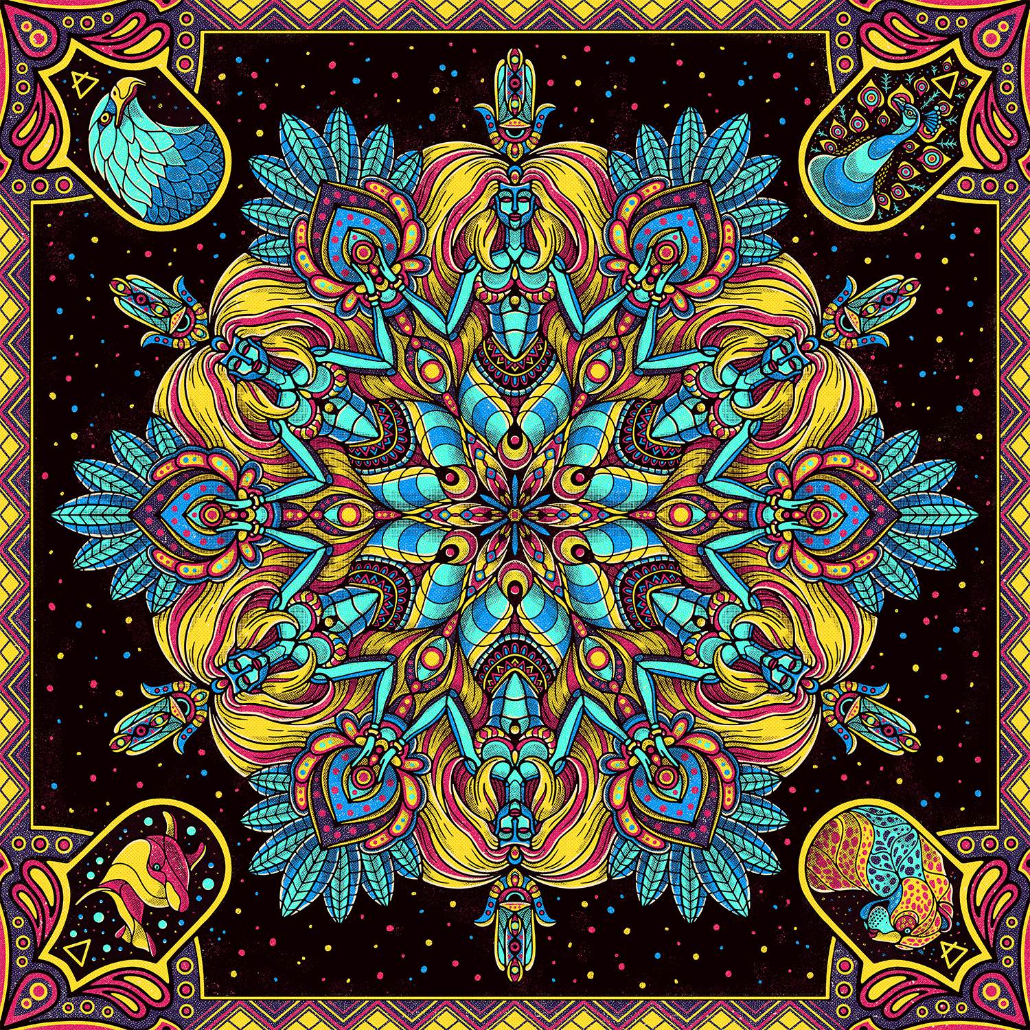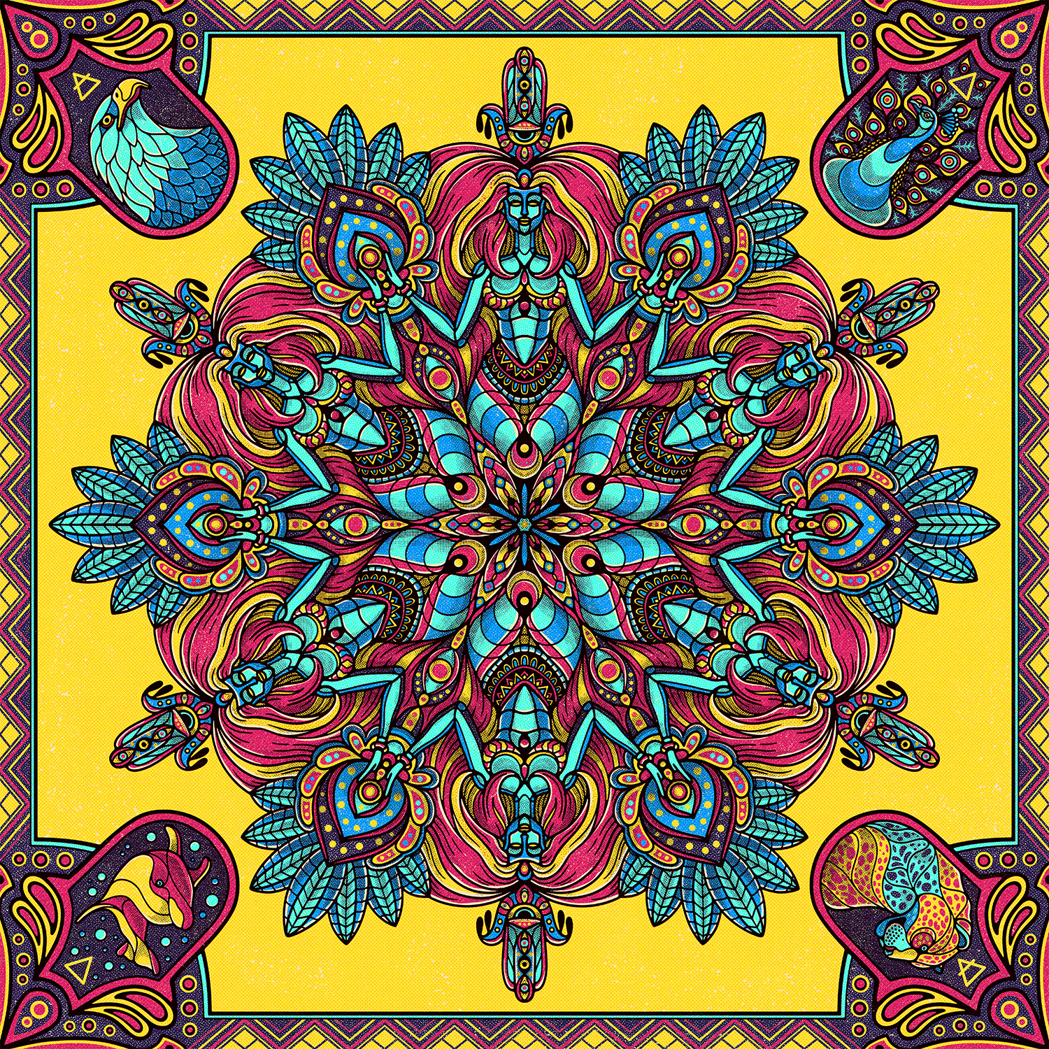 The idea for this artwork came from a meditation exercise focused on the feminine energy inside all of us. This mandala is inspired by moroccan pottery and egyptian art, so the sides are made in a way to fit in endlessly. There are also 4 animal archetypes that brings good energy to your life.