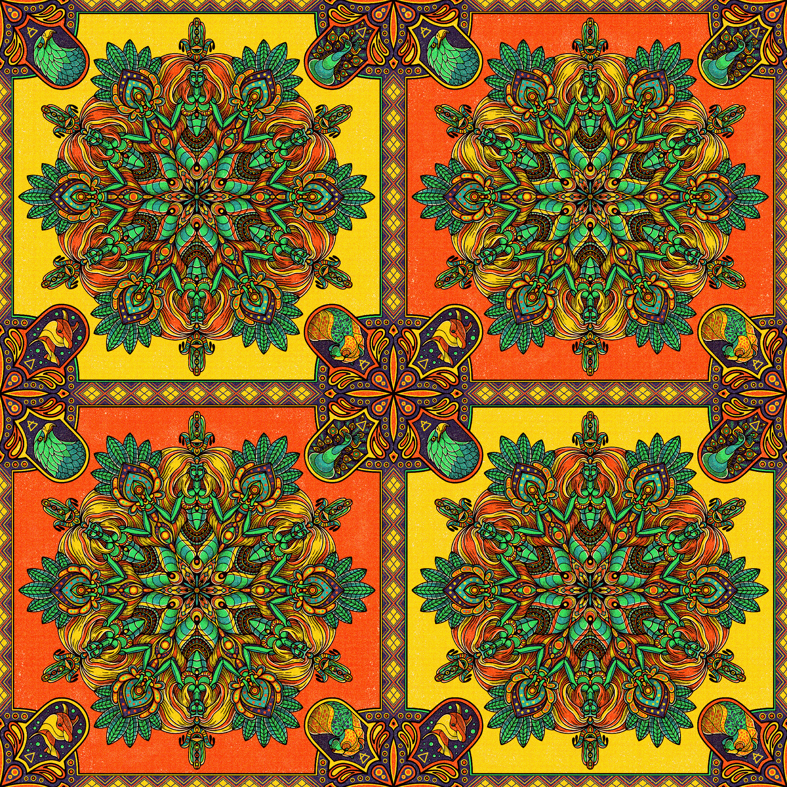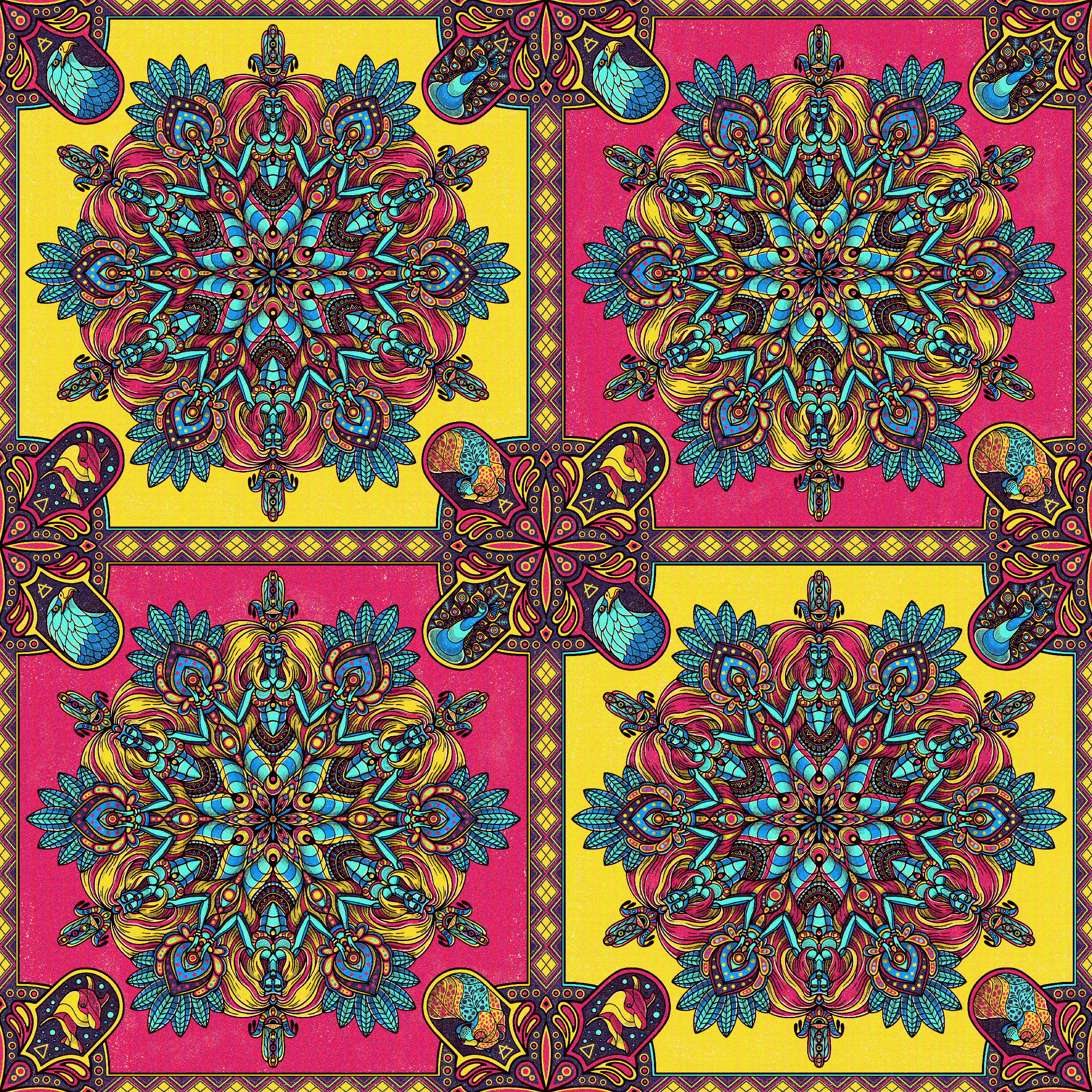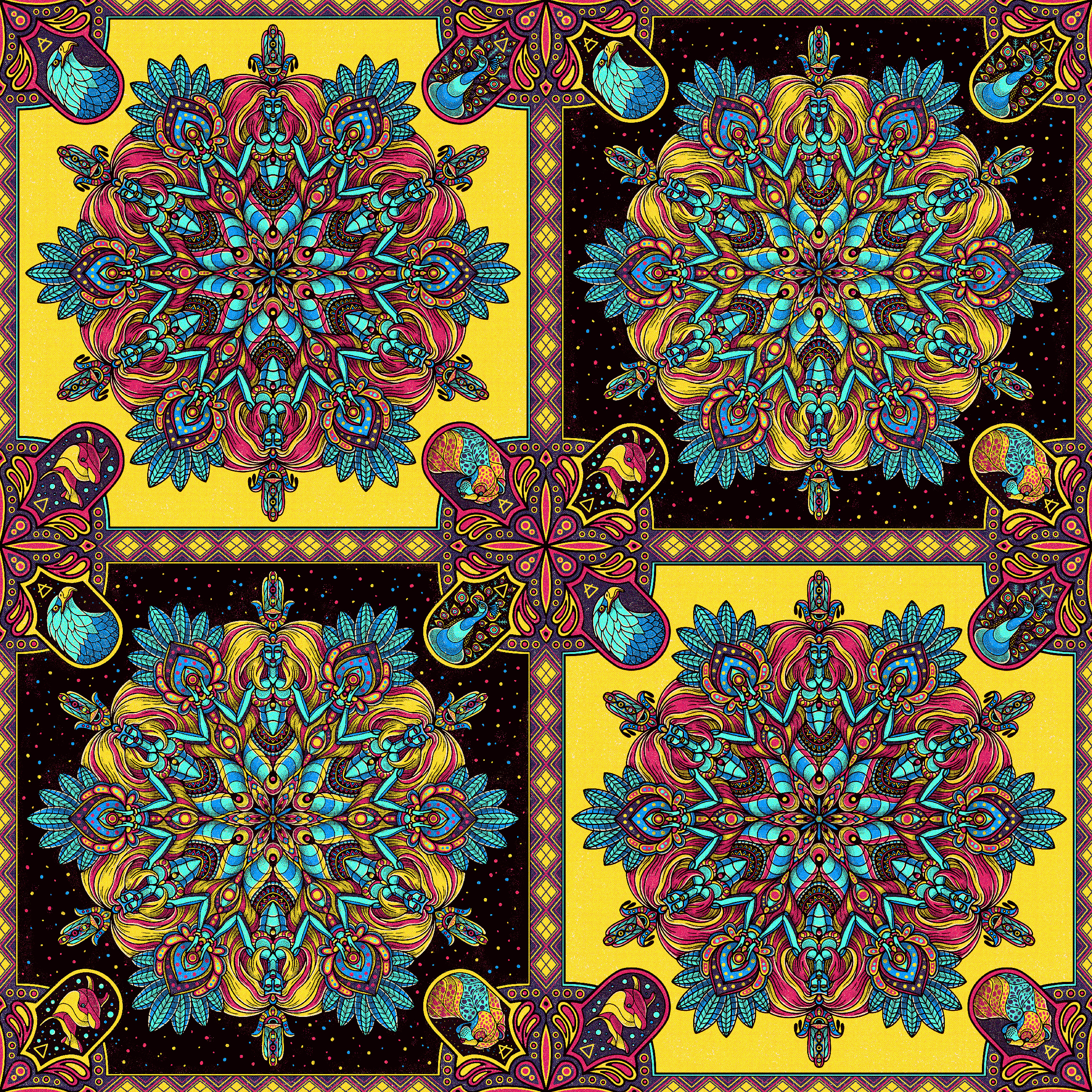 The idea for this artwork came from a meditation exercise focused on the feminine energy inside all of us. This mandala is inspired by moroccan pottery and egyptian art, so the sides are made in a way to fit in endlessly. There are also 4 animal archetypes that brings good energy to your life.