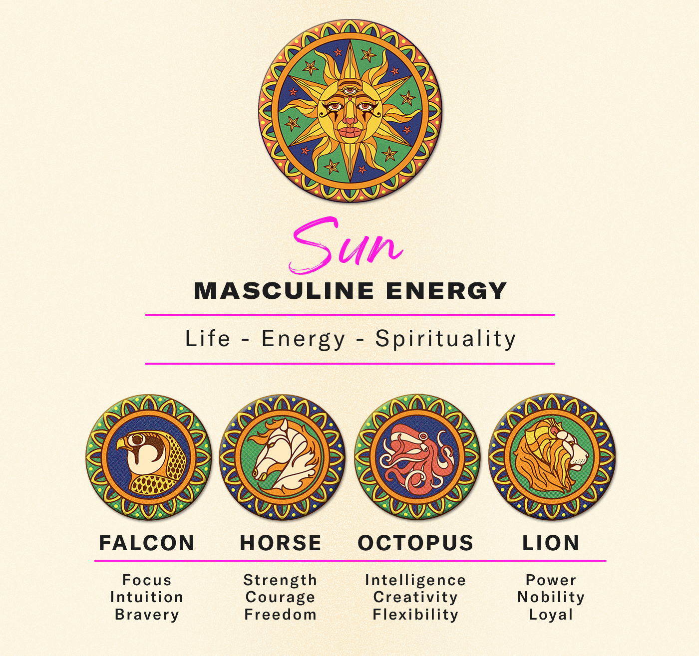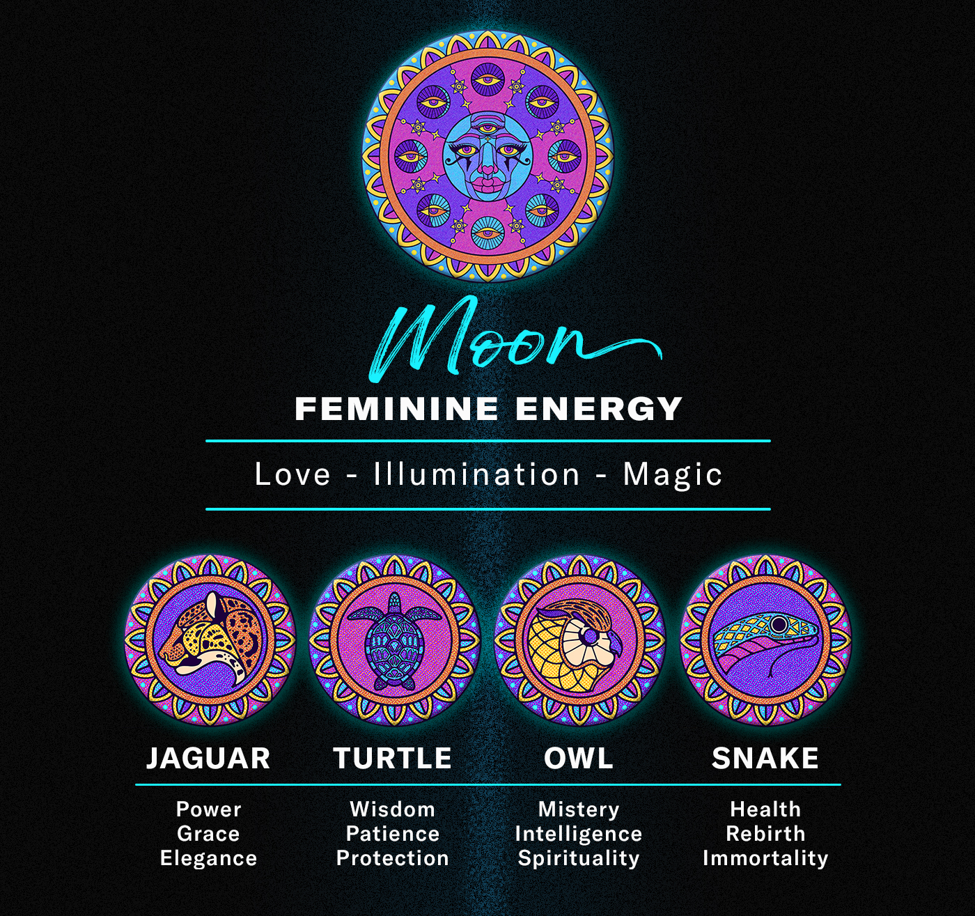 This project is inspired by the esoteric symbols of the Sun and the Moon, the Light and the Dark, the Day and the Night, the Yang and Yin, alongside some powerful animal archetypes to bring new and purified energy to your life.